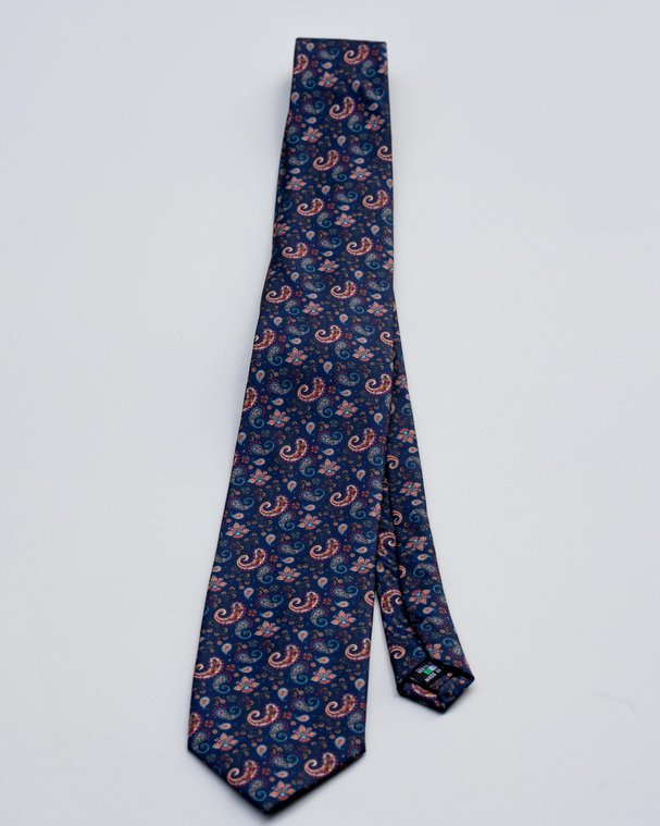 Cravatta in Seta con Fantasia Paisley - Blu - Old England quantità