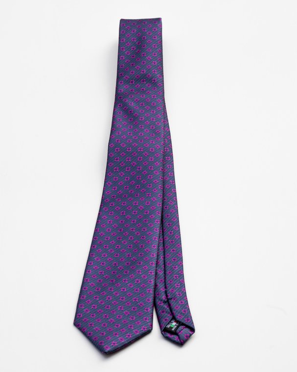 Cravatta in seta blu e fucsia con fantasia floreale – Blu – Old England