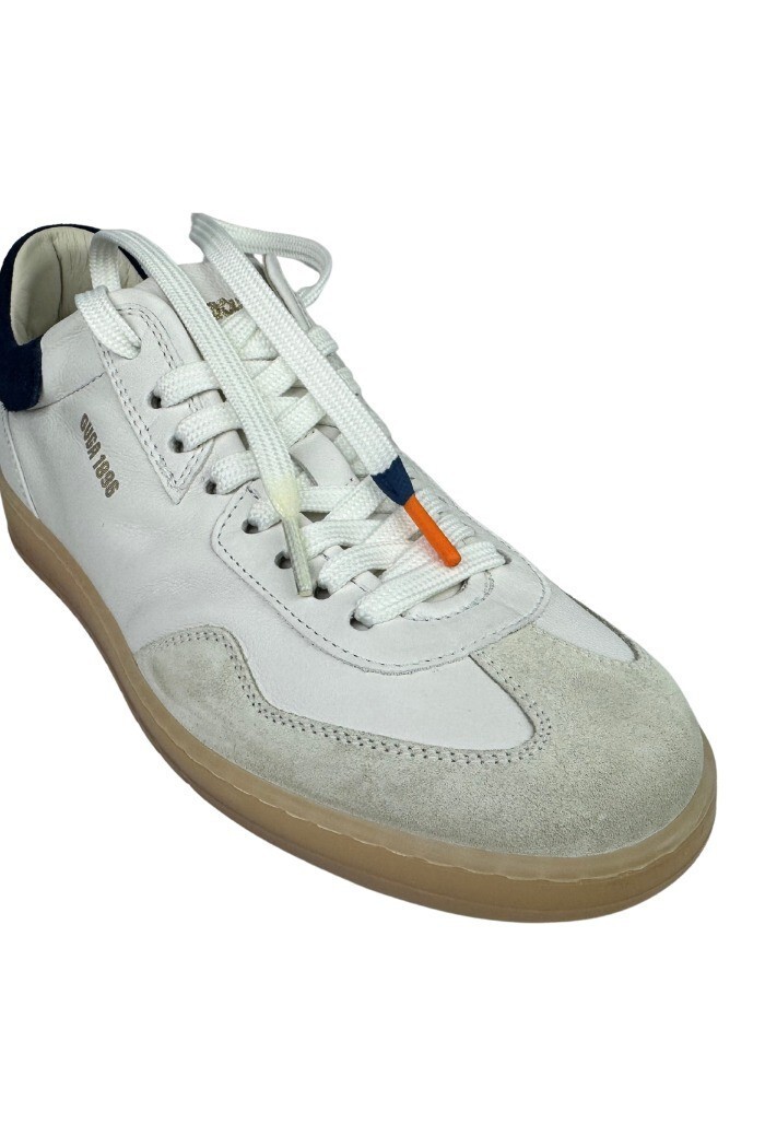 La nuova versione della Guga unisce design contemporaneo e dettagli artigianali per un look unico. Realizzata in pelle di vitello con inserti in camoscione vintage, offre un perfetto equilibrio tra stile e comfort. Il fondo in gomma garantisce massima aderenza e leggerezza, rendendola la sneaker ideale per chi ama distinguersi con personalità.