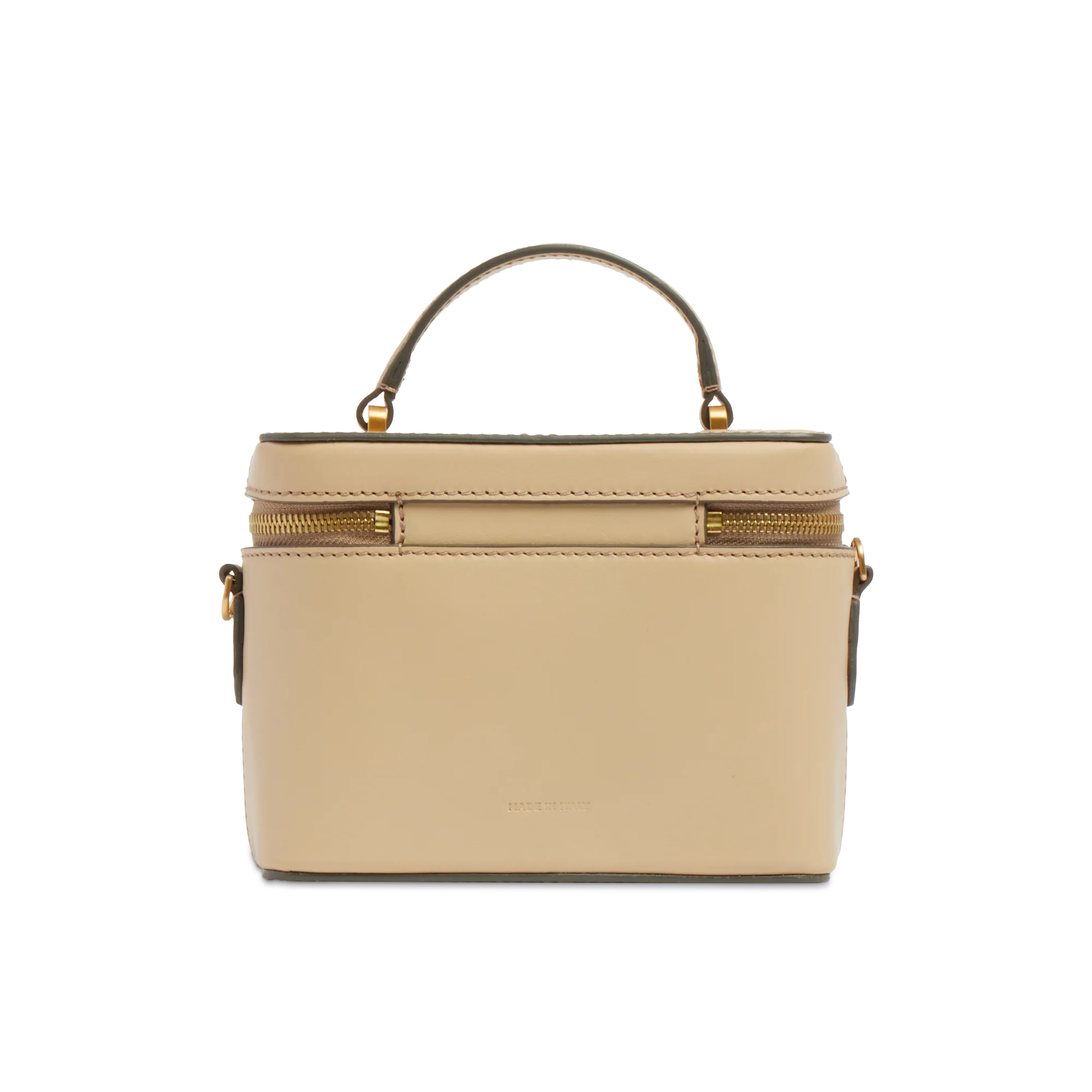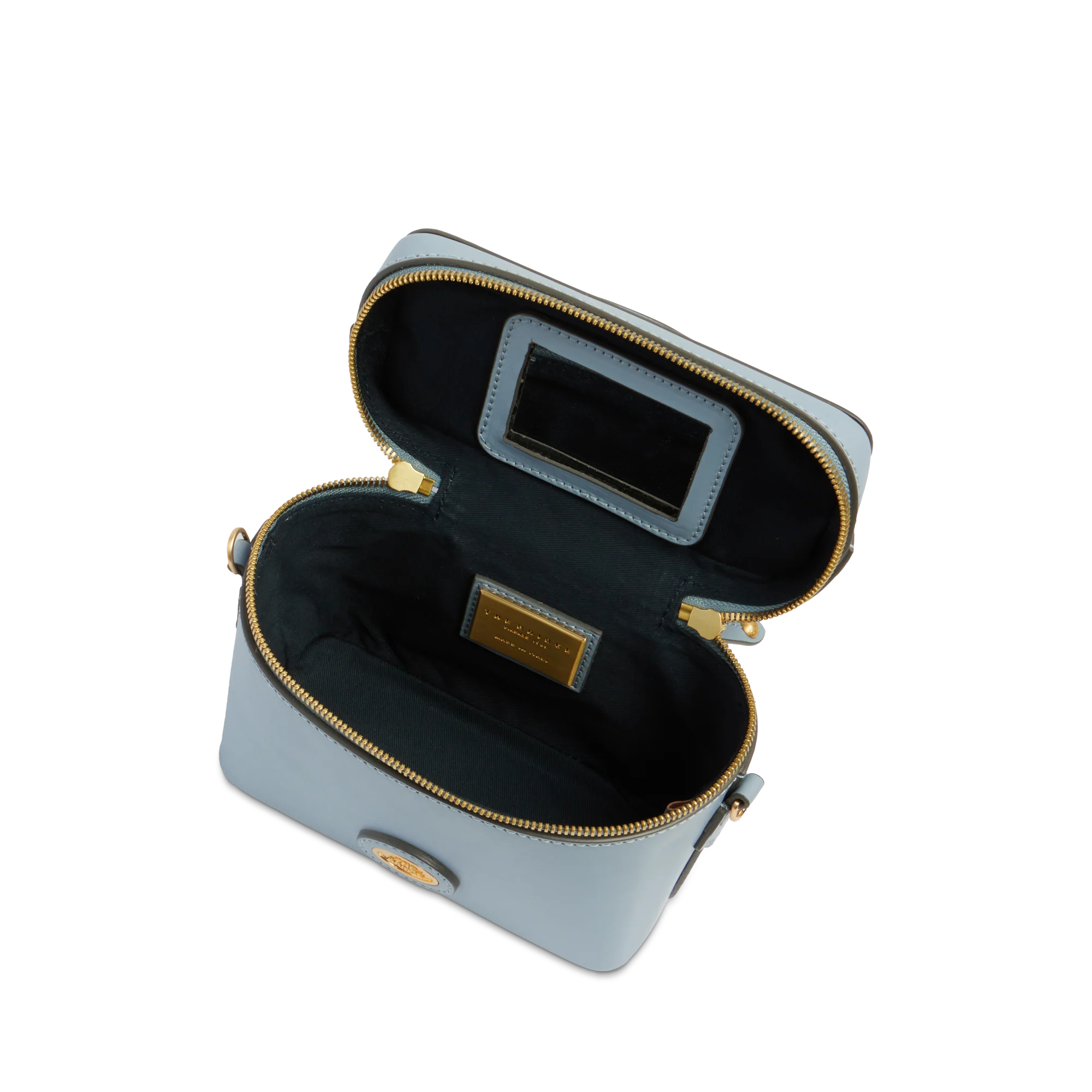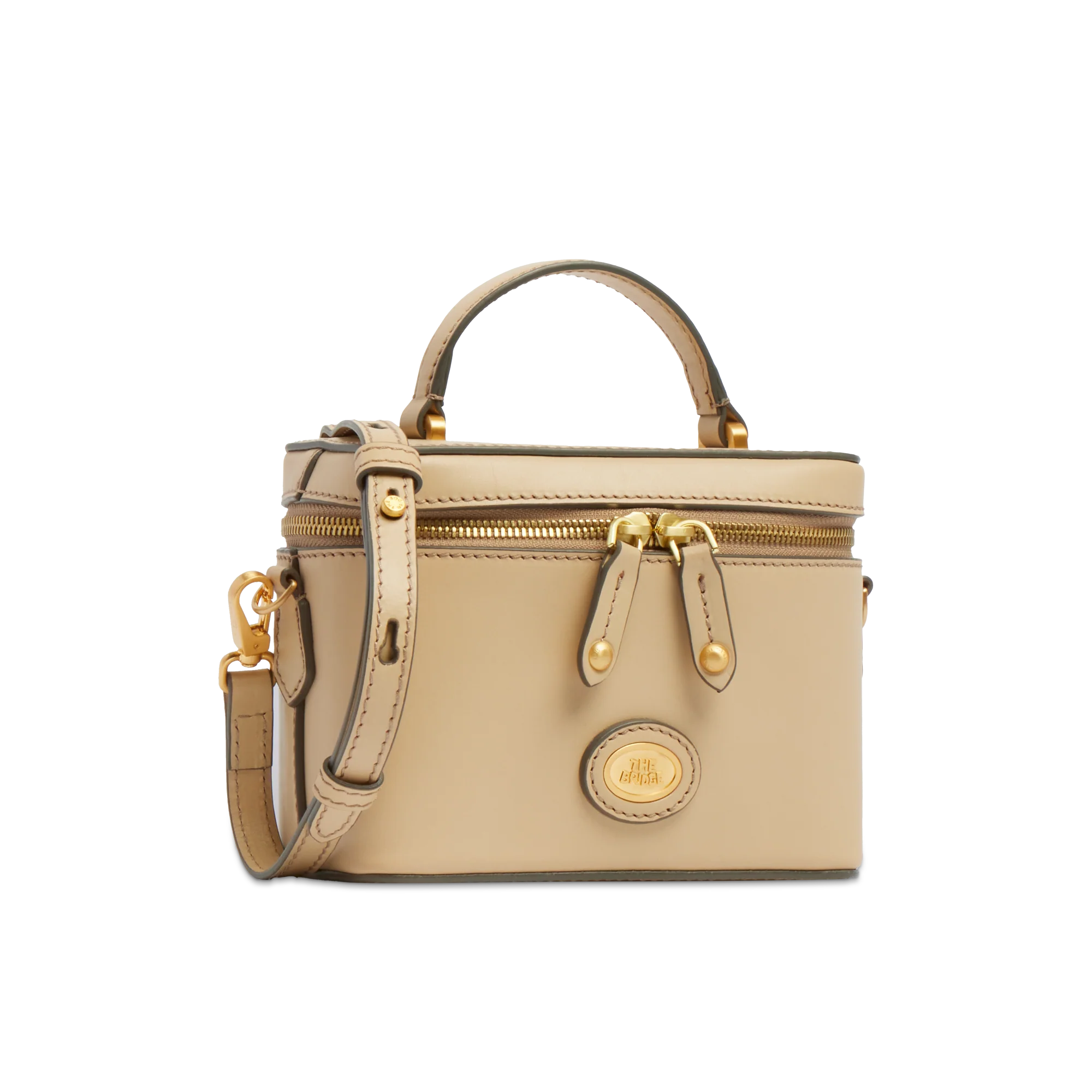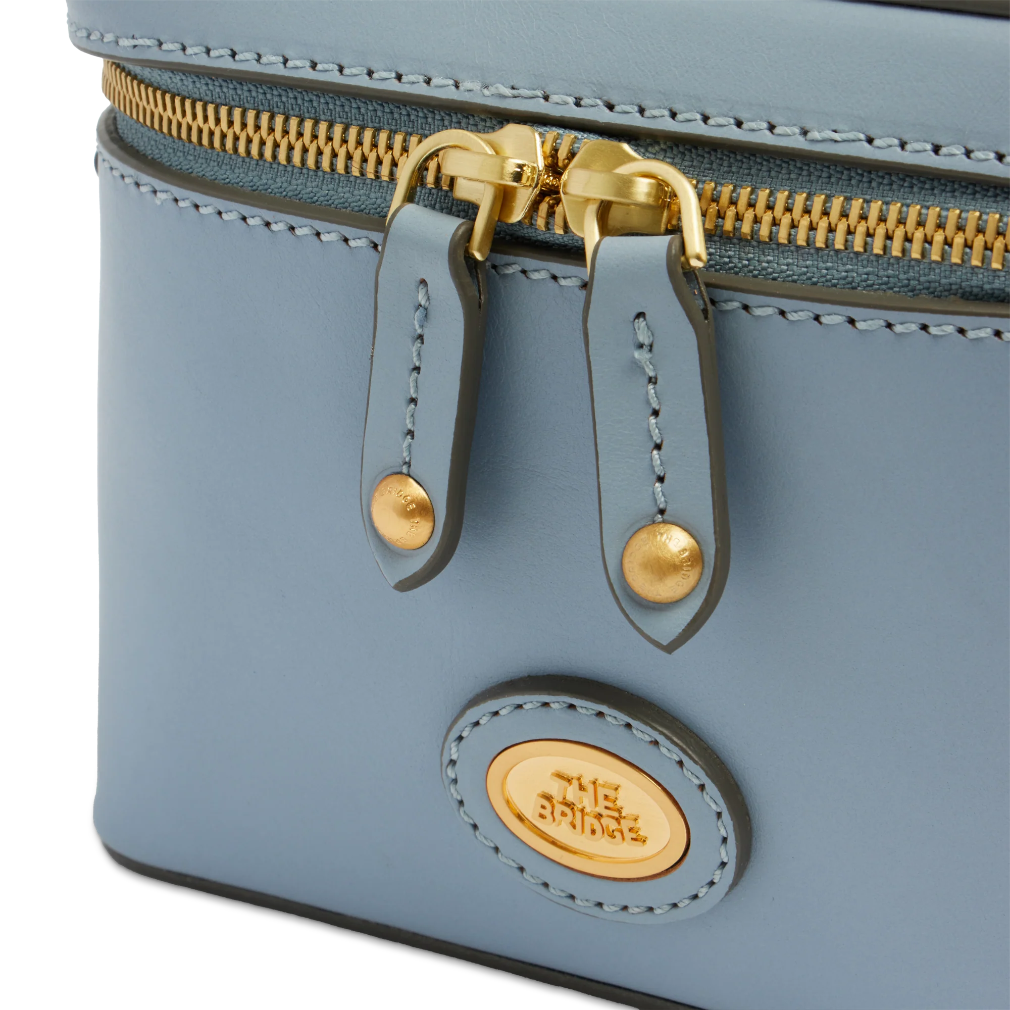 • Mini bauletto The Bridge in pelle, manico gioiello, tracolla removibile e specchietto interno.