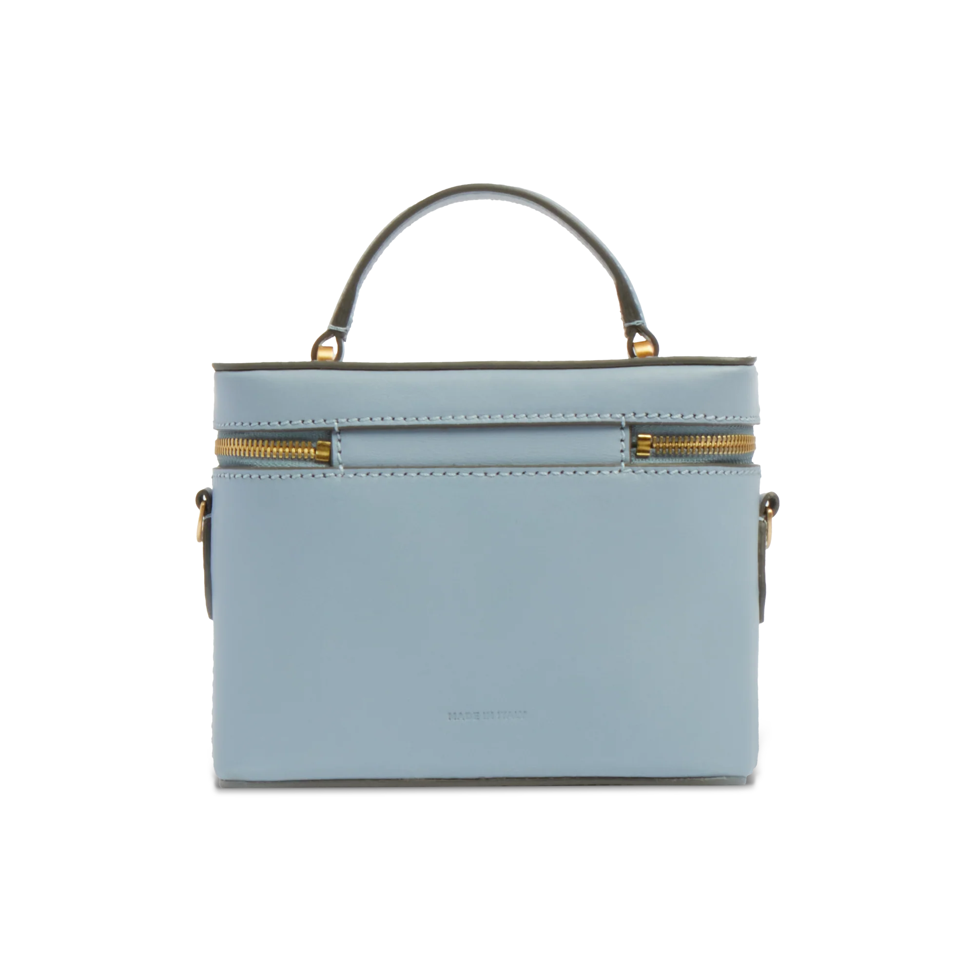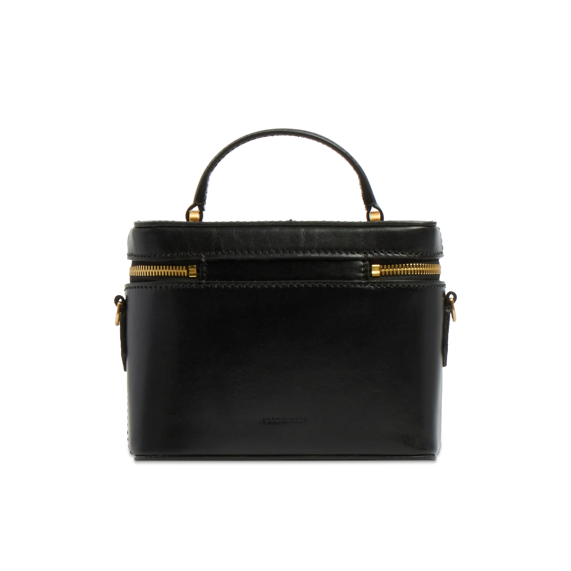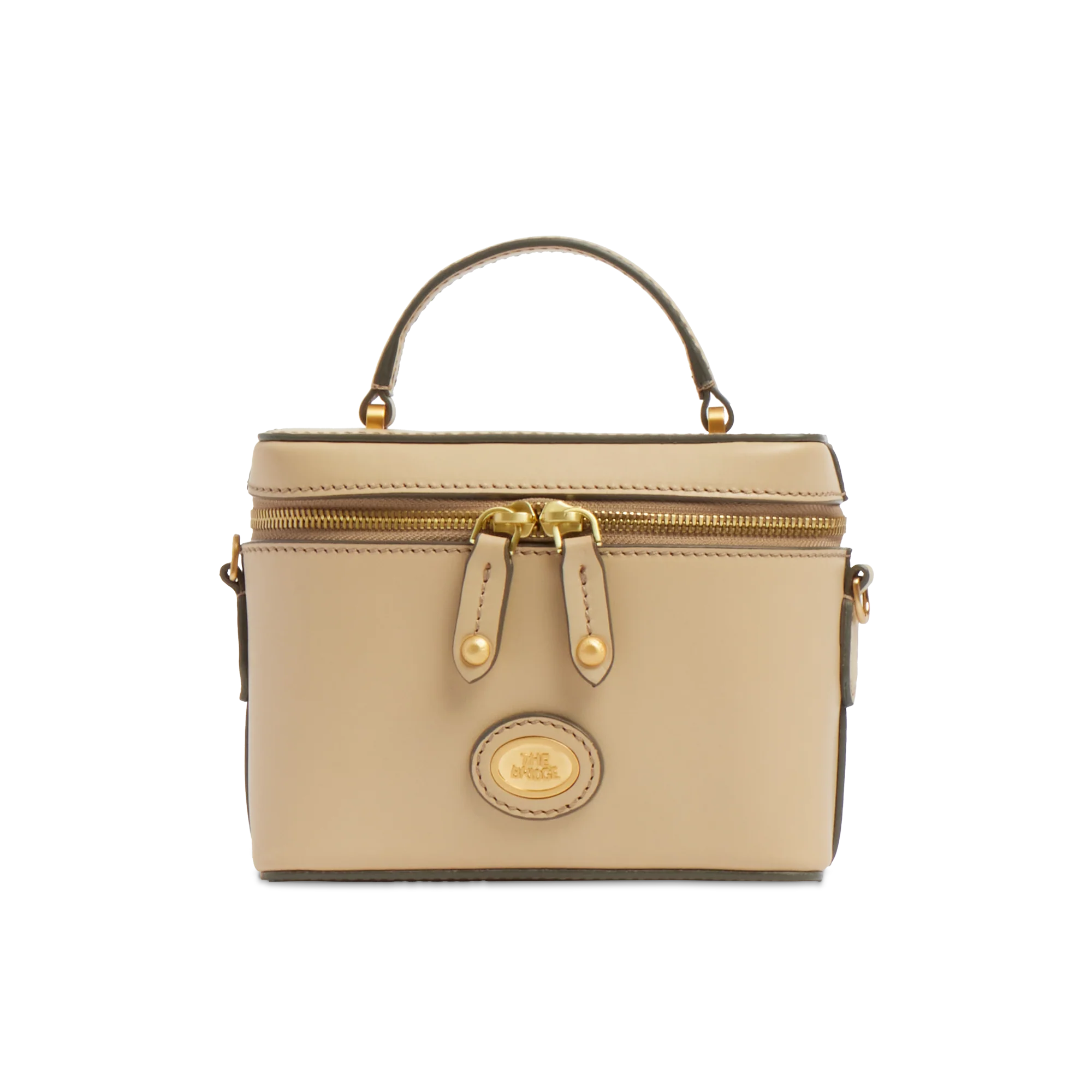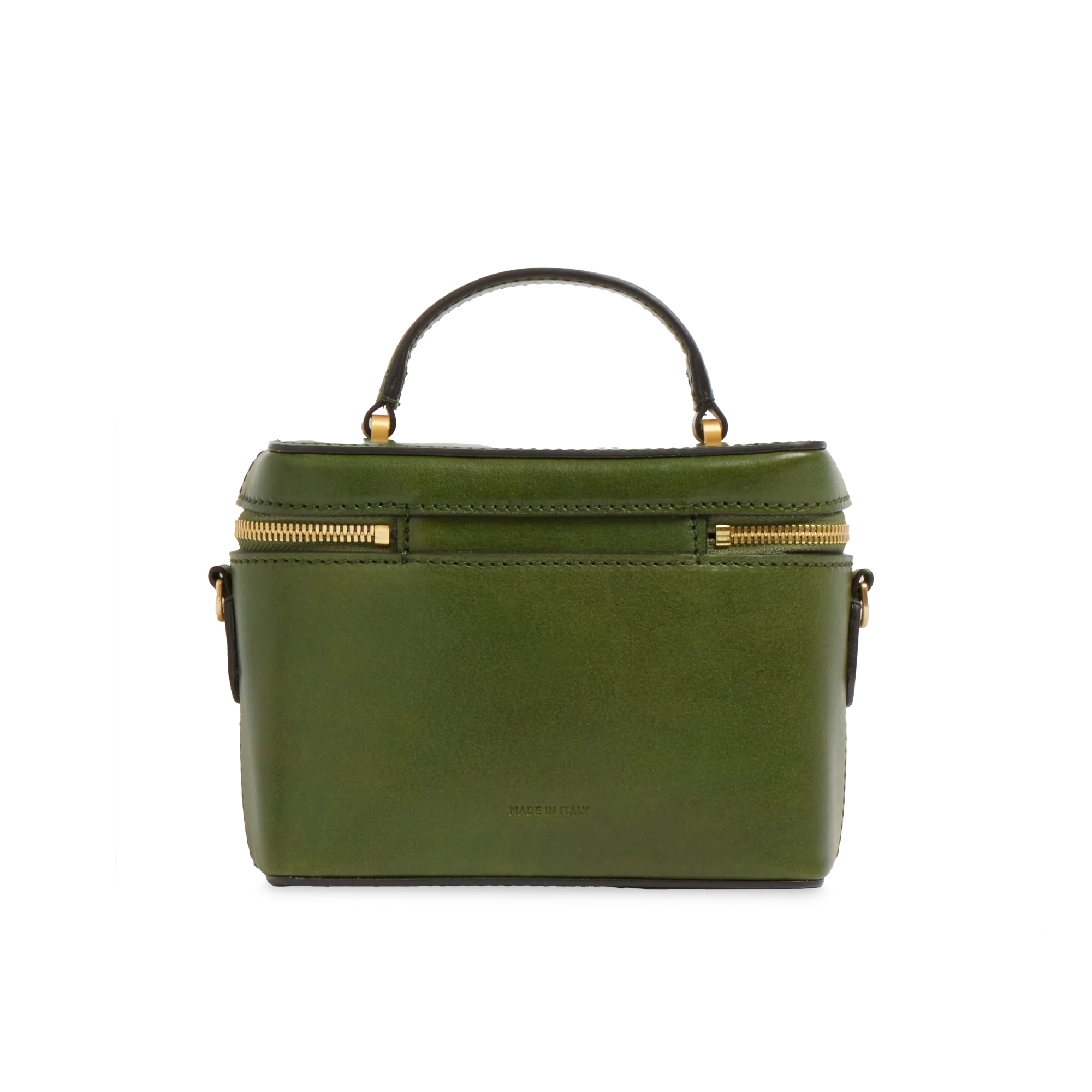 • Mini bauletto The Bridge in pelle, manico gioiello, tracolla removibile e specchietto interno.