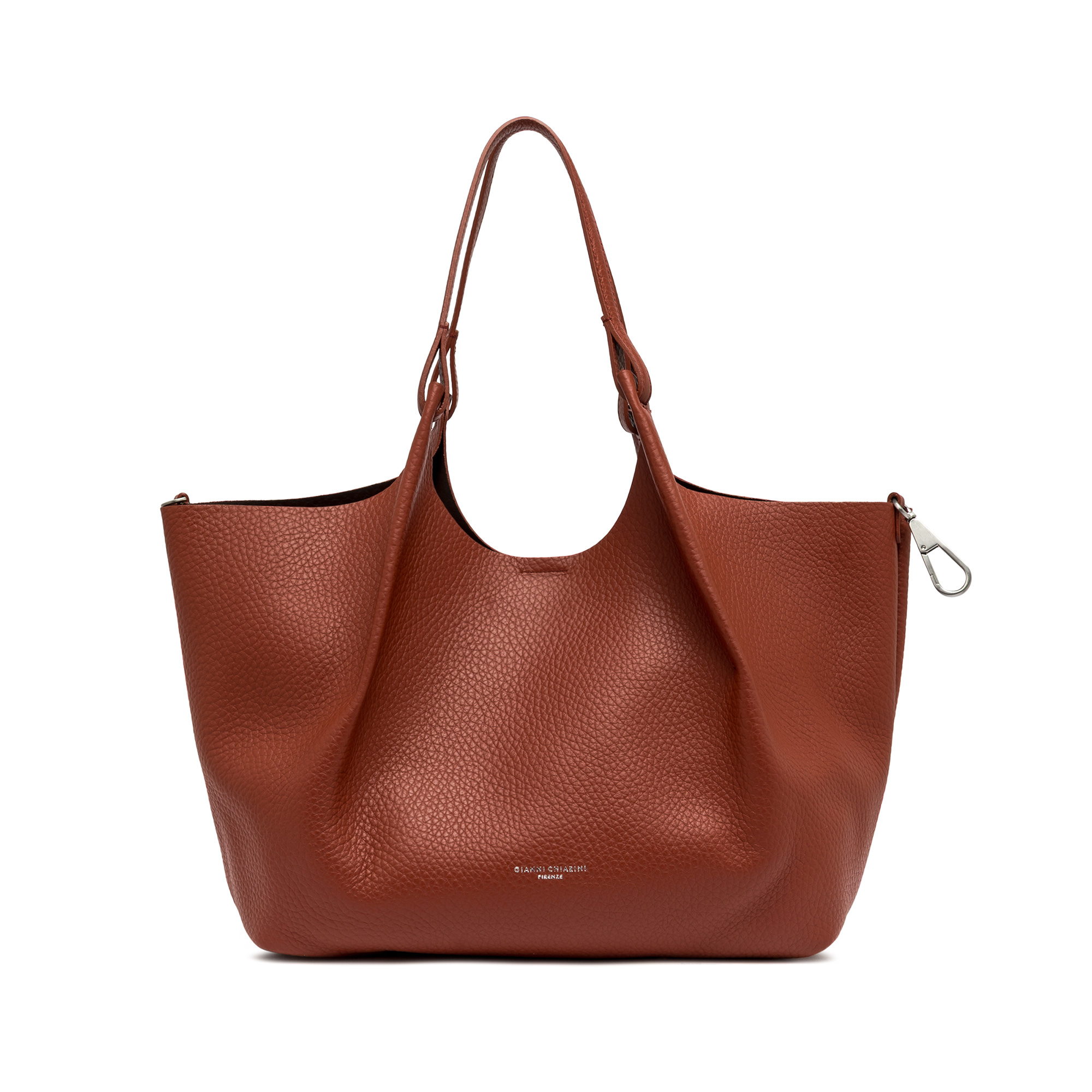 L’icona del brand DUA si distingue per un design semplice ma contemporaneo. Realizzata in morbida pelle double dalla grana maxi, presenta un monoscomparto sfoderato con una pochette interna, profili superiori in pelle martellata e doppi manici in tono. Pratica ed essenziale, è la borsa ideale per completare i look di ogni donna. Può essere portata a spalla. Dimensioni: 34x38x16 cm.
