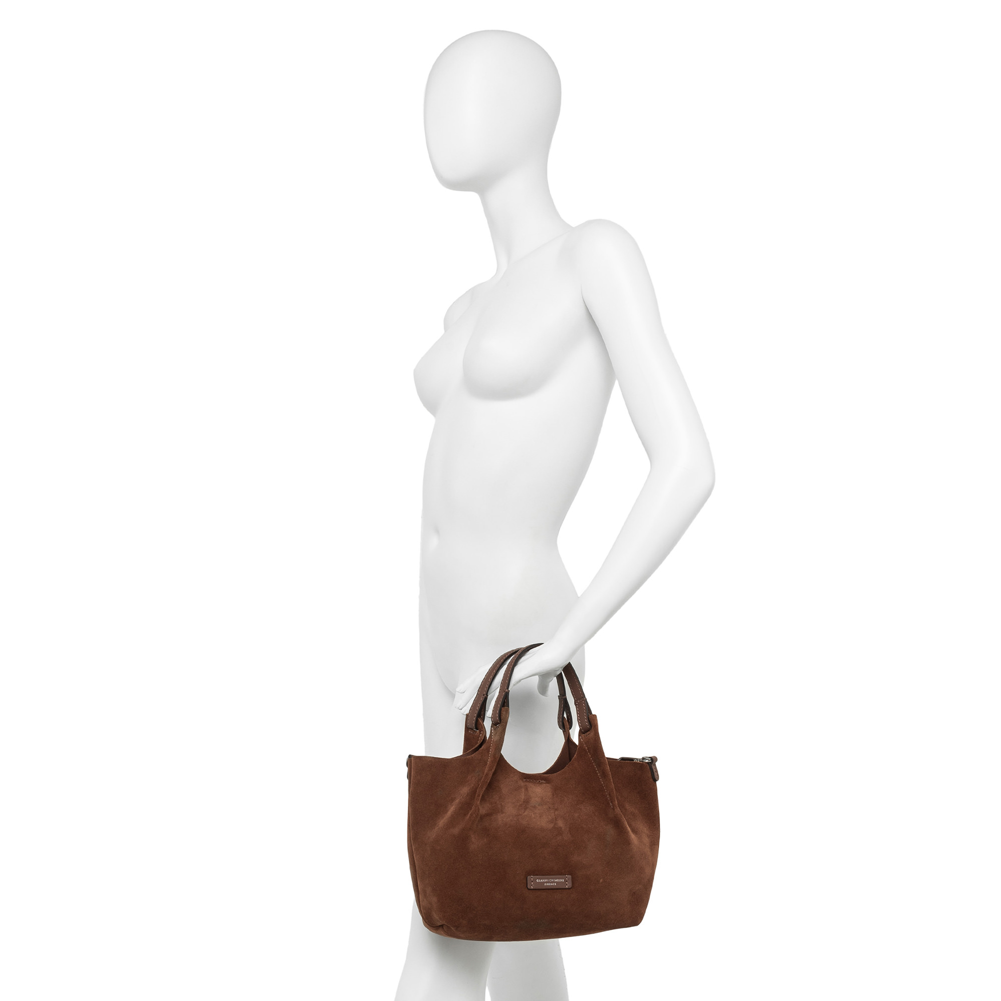 L’icona del brand DUA si distingue per un design semplice, ma contemporaneo. Realizzata in morbida pelle scamosciata, presenta un monoscomparto sfoderato con pochette interna, profili superiori in pelle martellata e doppi manici in tono. Pratica ed essenziale, è la borsa ideale per completare ogni donna. Può essere portata a mano o crossbody grazie alla tracolla removibile di cui è dotata. Dimensioni: 24x27x12 cm.