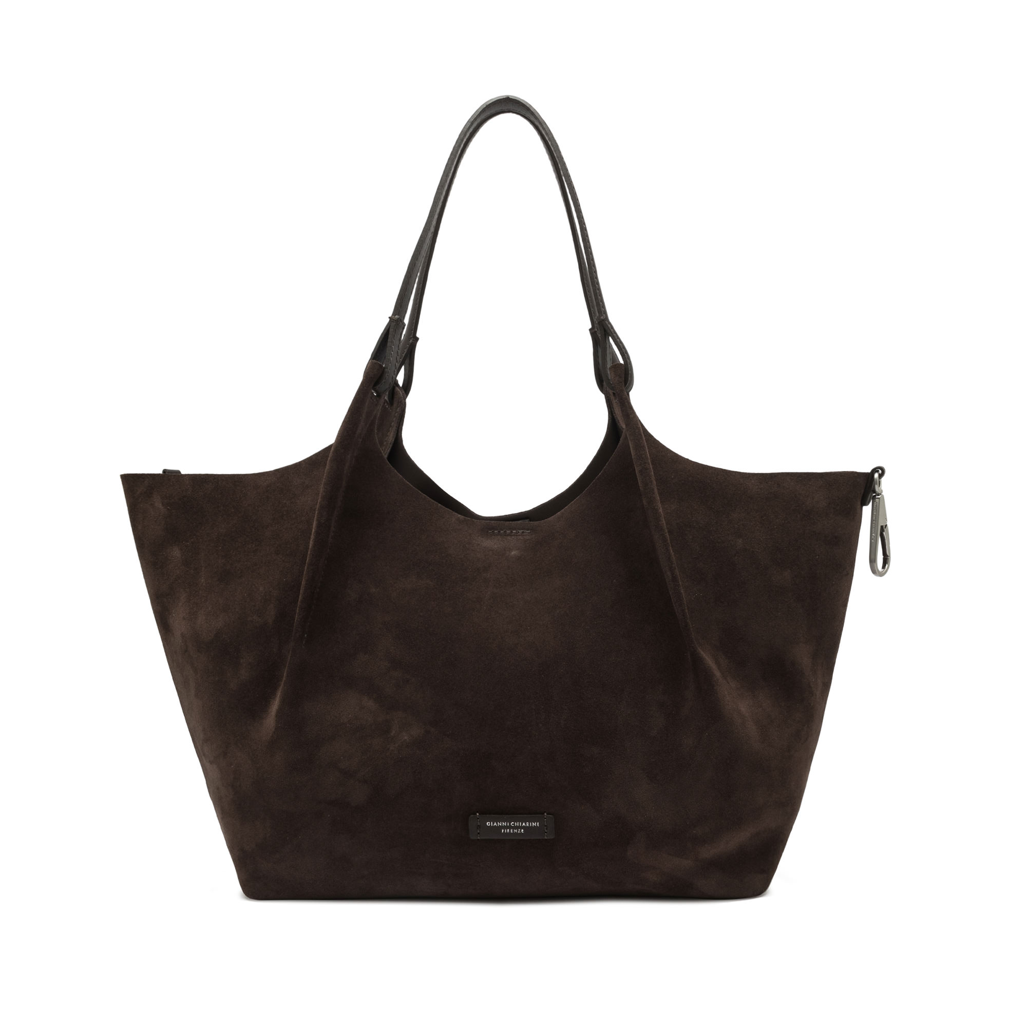 L’icona del brand DUA si distingue per un design semplice, ma contemporaneo. Realizzata in morbida pelle scamosciata, presenta un monoscomparto sfoderato, profili superiori in pelle martellata e doppi manici in tono. Pratica ed essenziale, è la borsa ideale per completare ogni donna. Può essere portata a spalla o crossbody grazie alla tracolla di servizio di cui è dotata. Dimensioni: 34x38x16 cm.