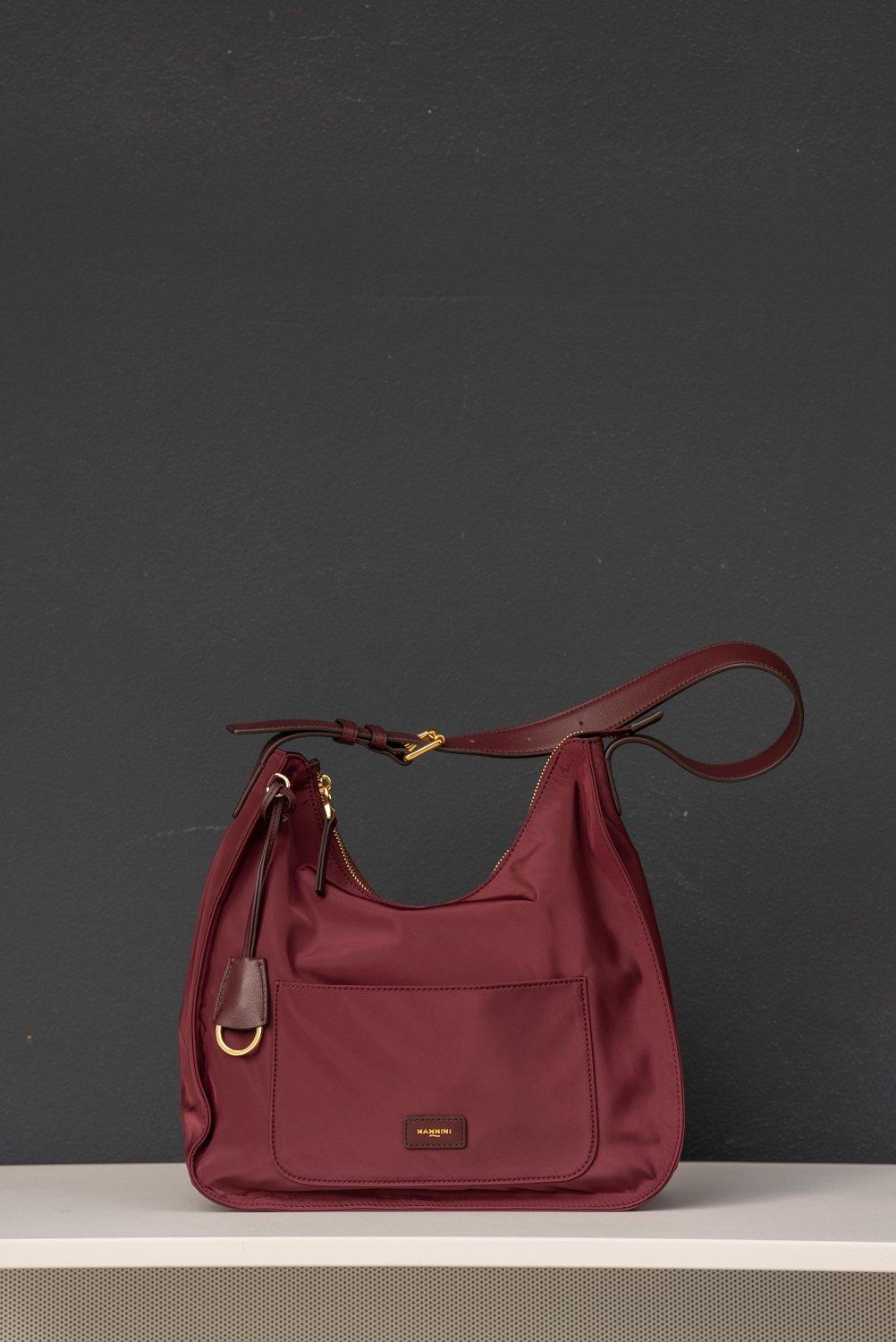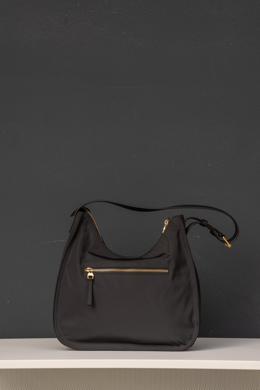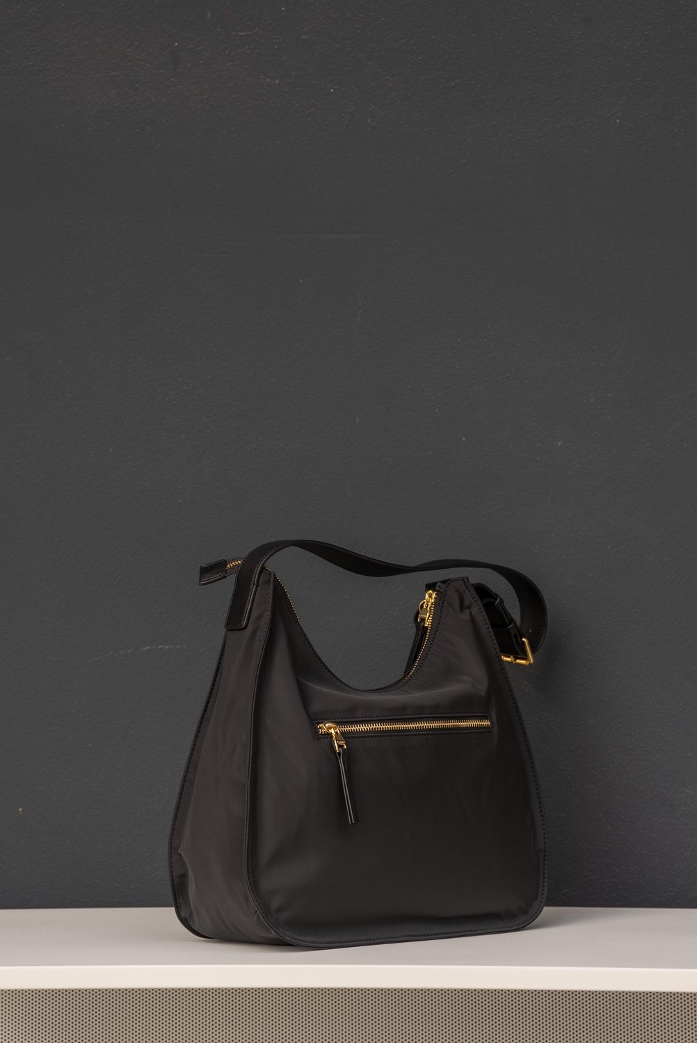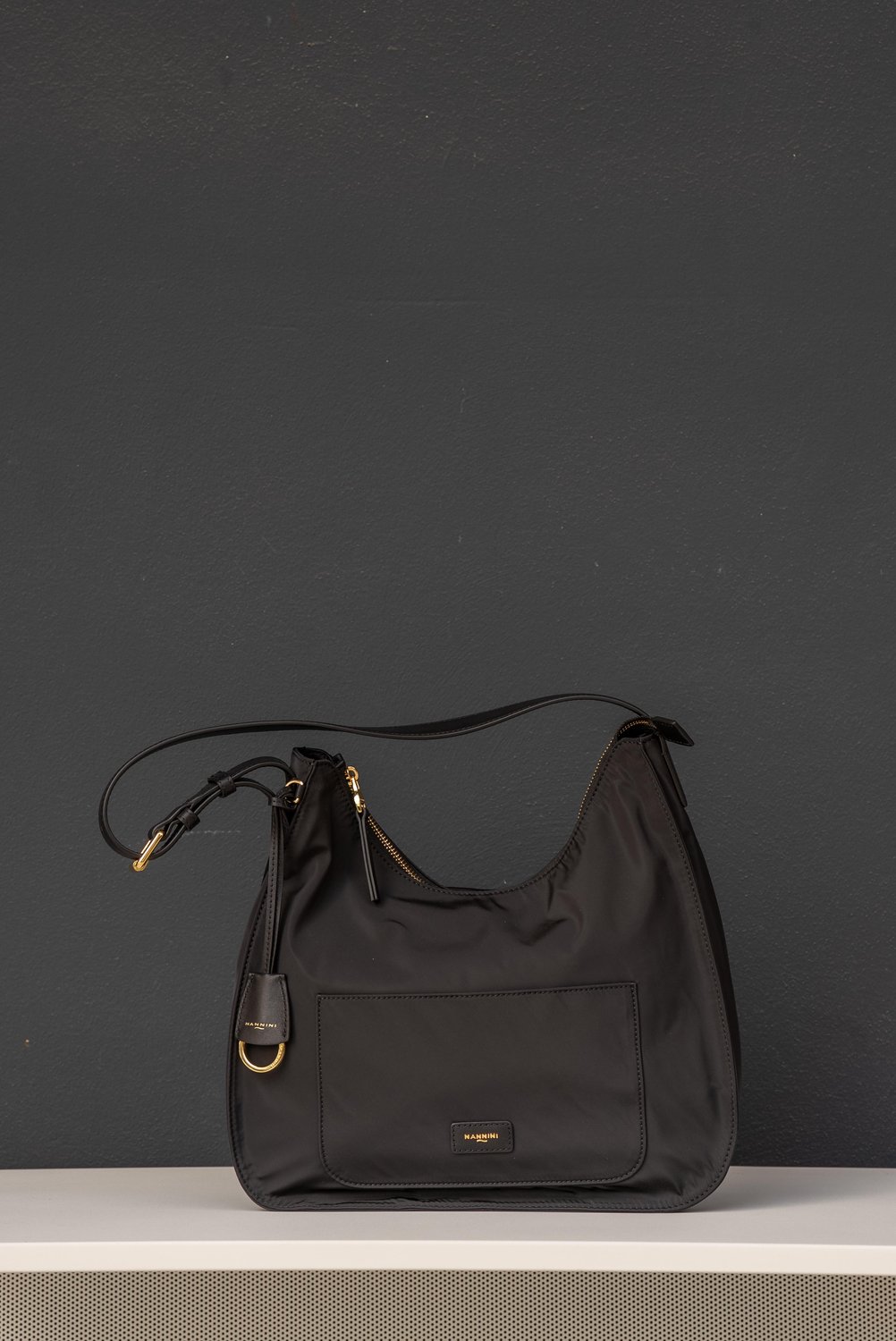 Hobo realizzata in nylon e pelle con manico regolabile,caratterizzata da una tasca frontale e charme in metalleria dorata