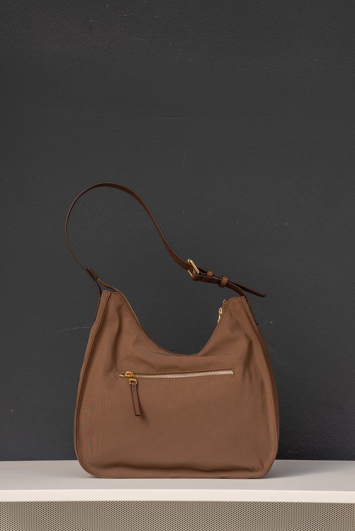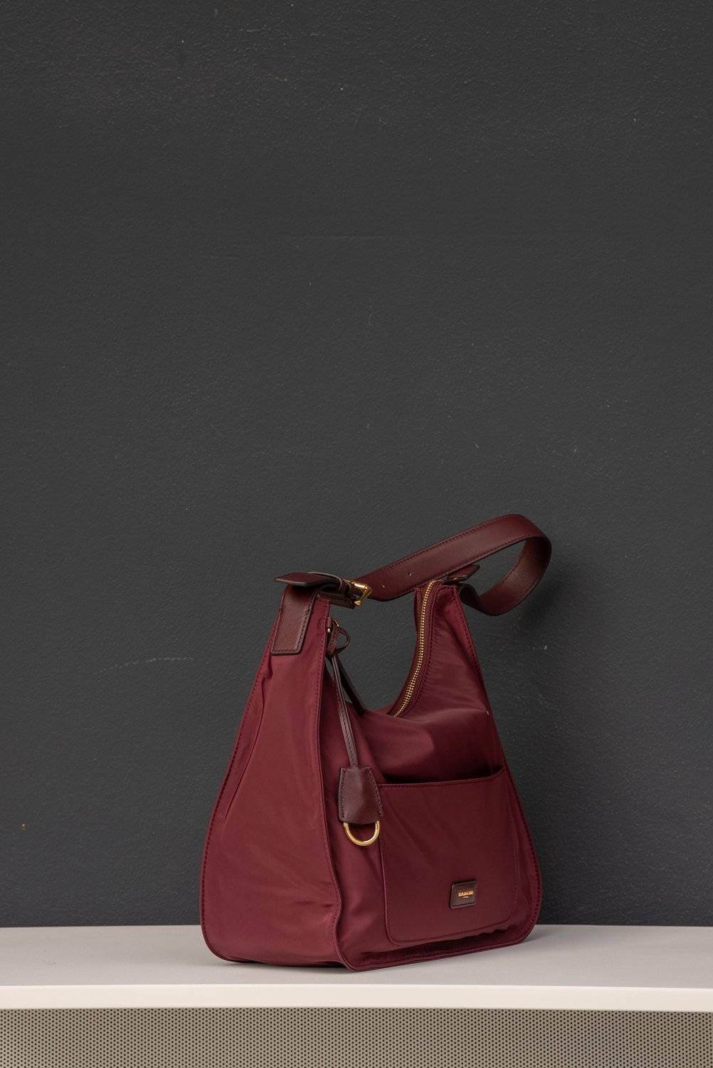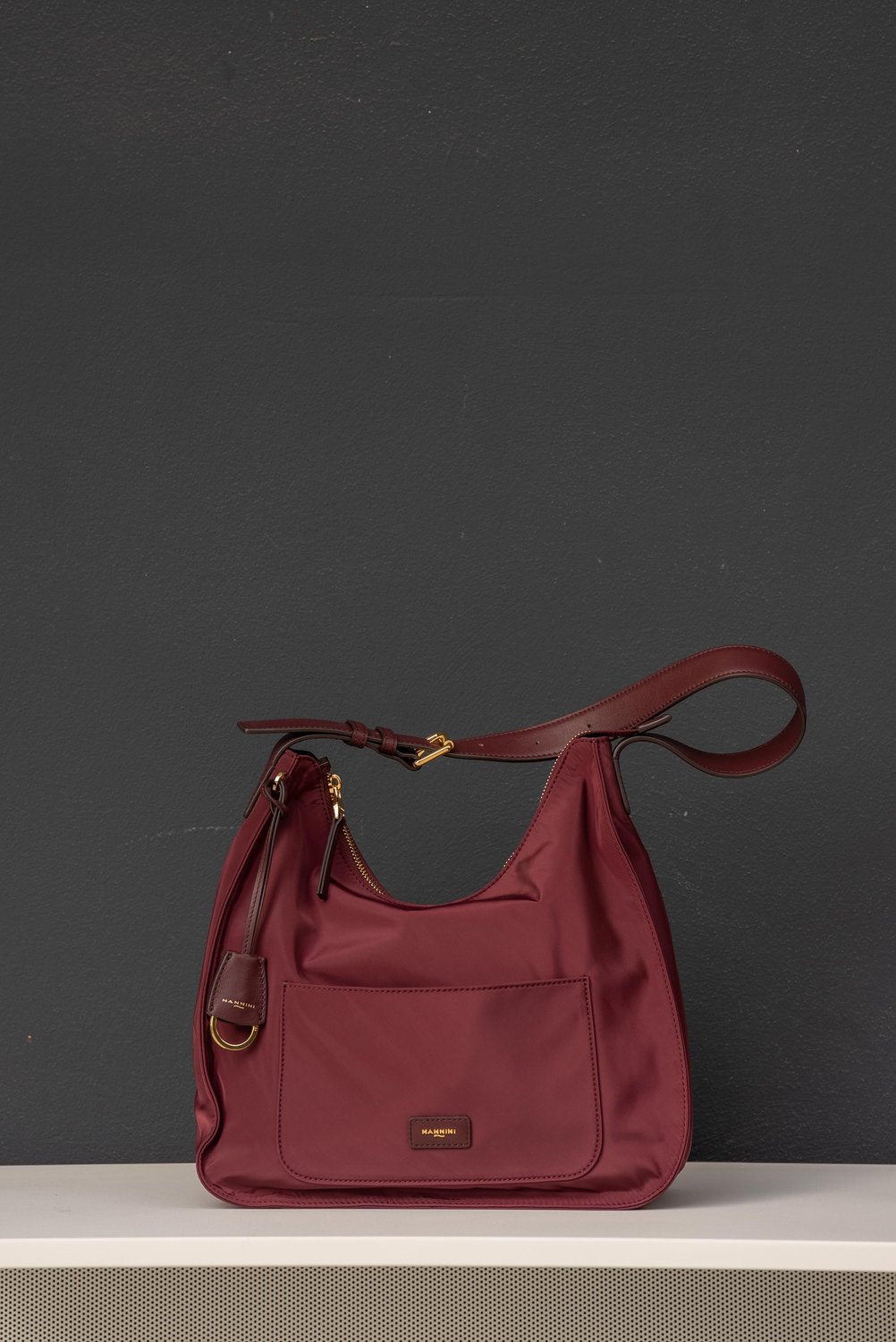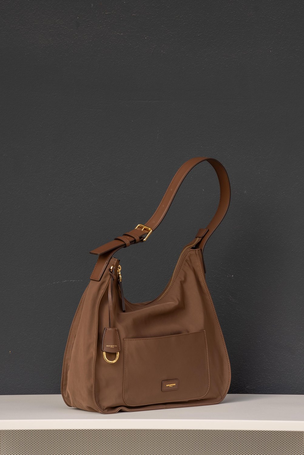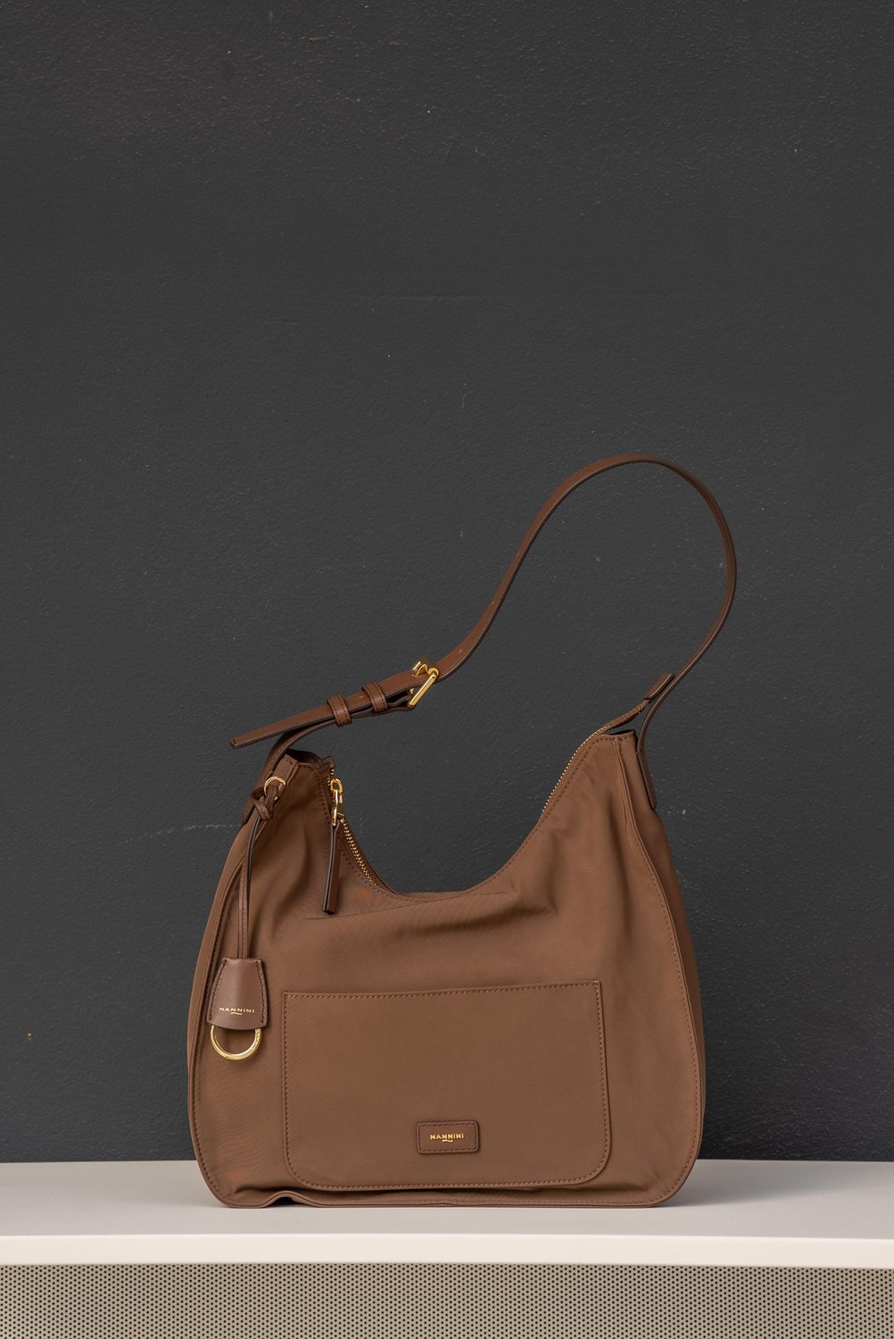 Hobo realizzata in nylon e pelle con manico regolabile,caratterizzata da una tasca frontale e charme in metalleria dorata