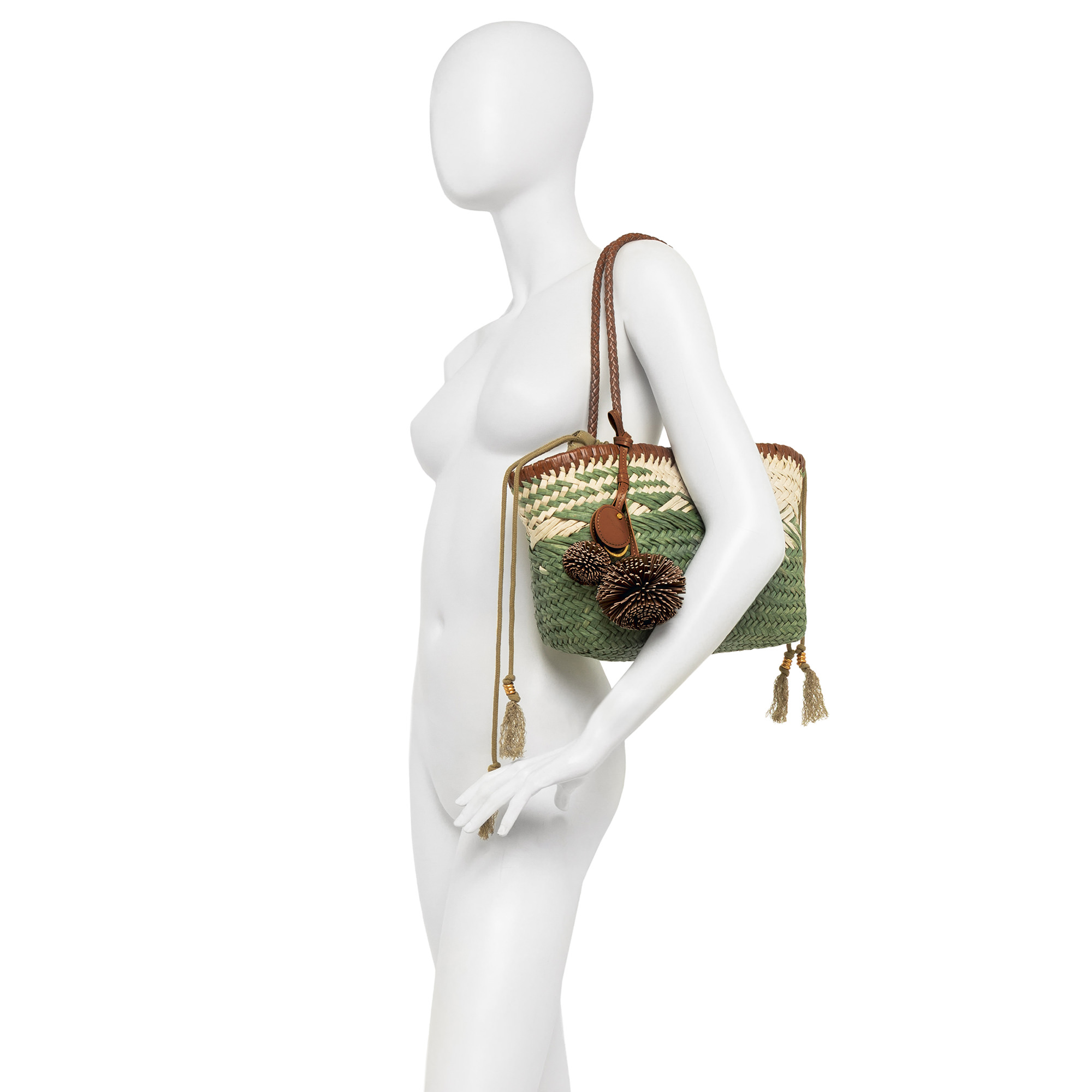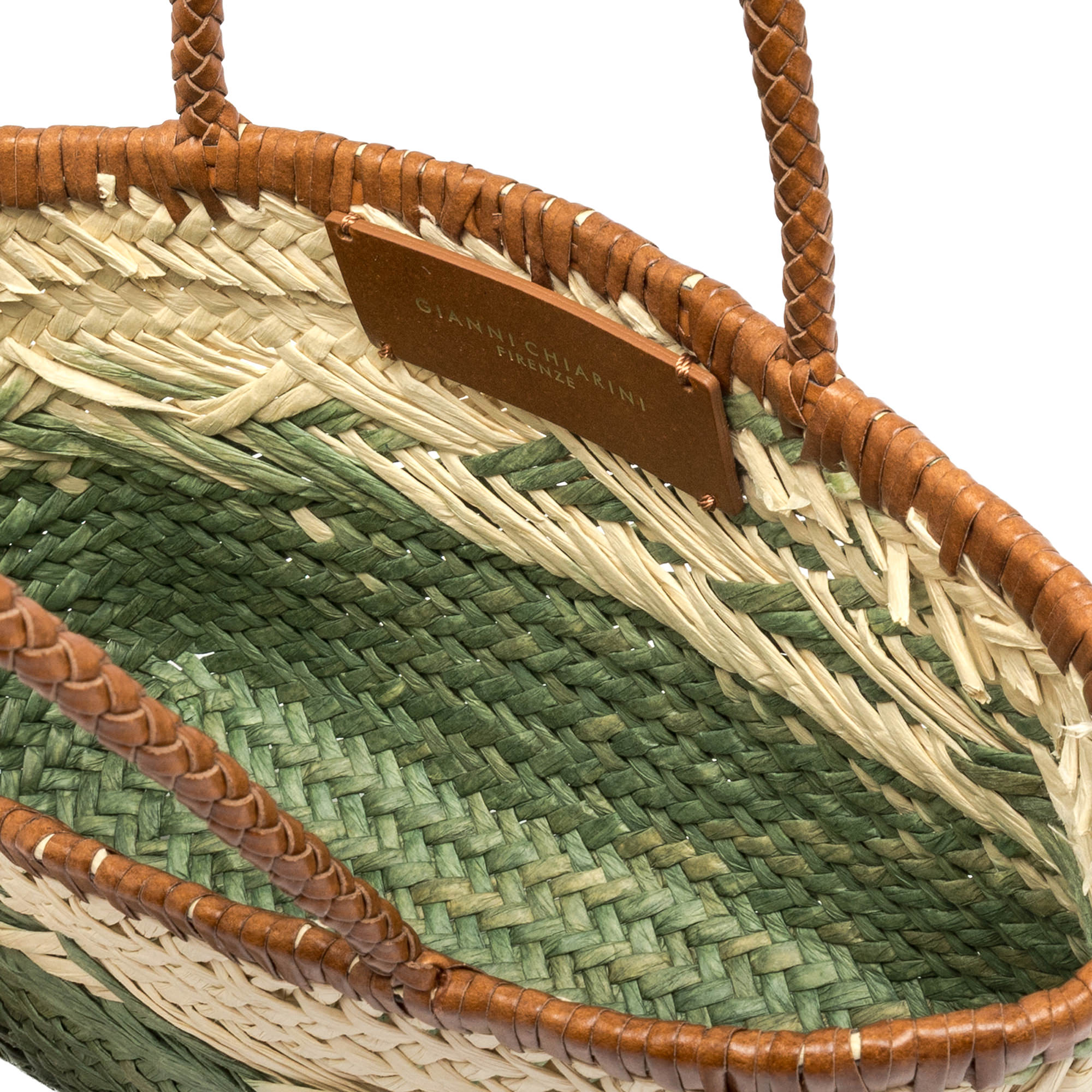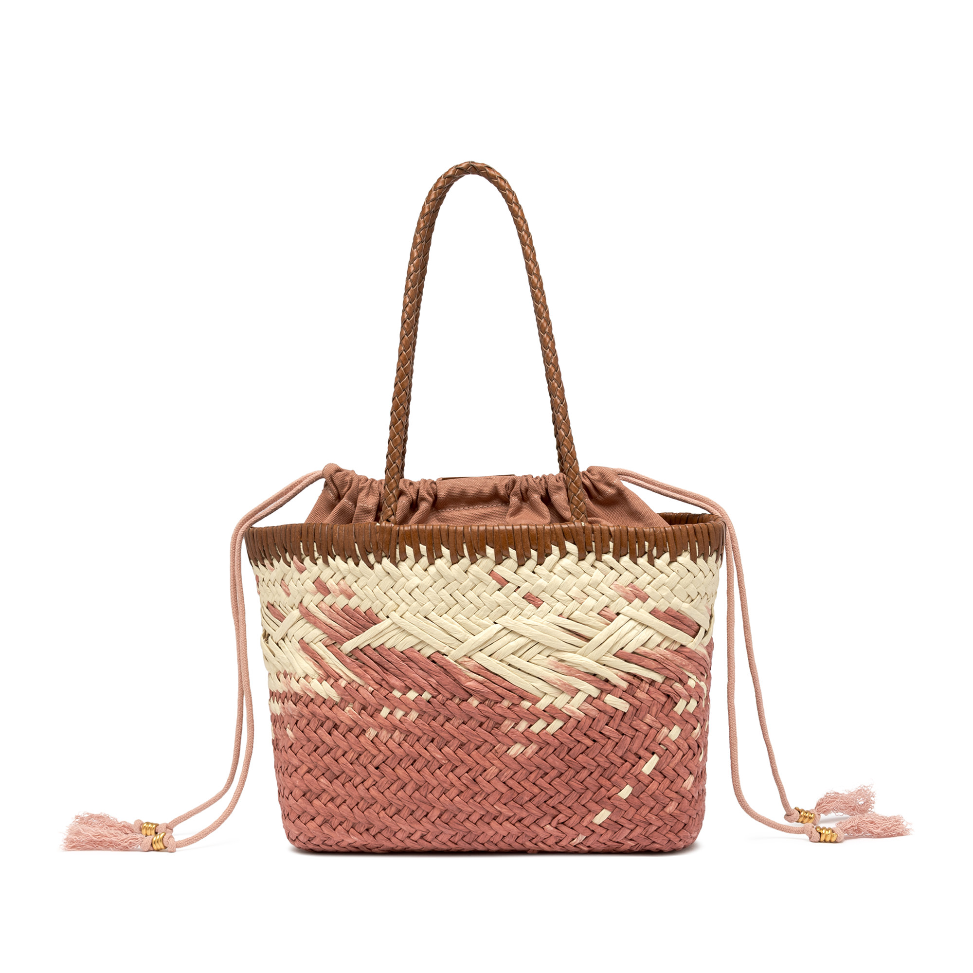 Paloma è la nuova borsa di Gianni Chiarini Firenze, realizzata in paglia naturale, dal look leggero e contemporaneo. Caratterizzata da una chiusura con coulisse, è arricchita da nappe in tono con dettagli in metallo. Pratica e versatile, è l’accessorio ideale per completare i look estivi con stile. Dimensioni: 32x19x11 cm.