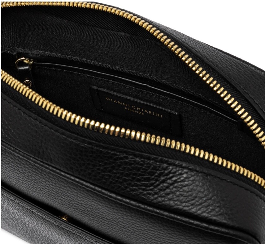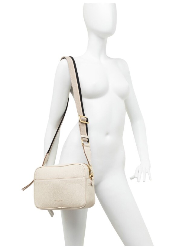 Nina by Gianni Chiarini Firenze è una pratica borsa a tracolla in pelle martellata, caratterizzata da una shape squadrata. Presenta uno scomparto principale con chiusura zip e una tasca piatta sul fronte. Dotata di una tracolla aggiuntiva in tessuto intrecciato per un utilizzo ancora più trasversale.