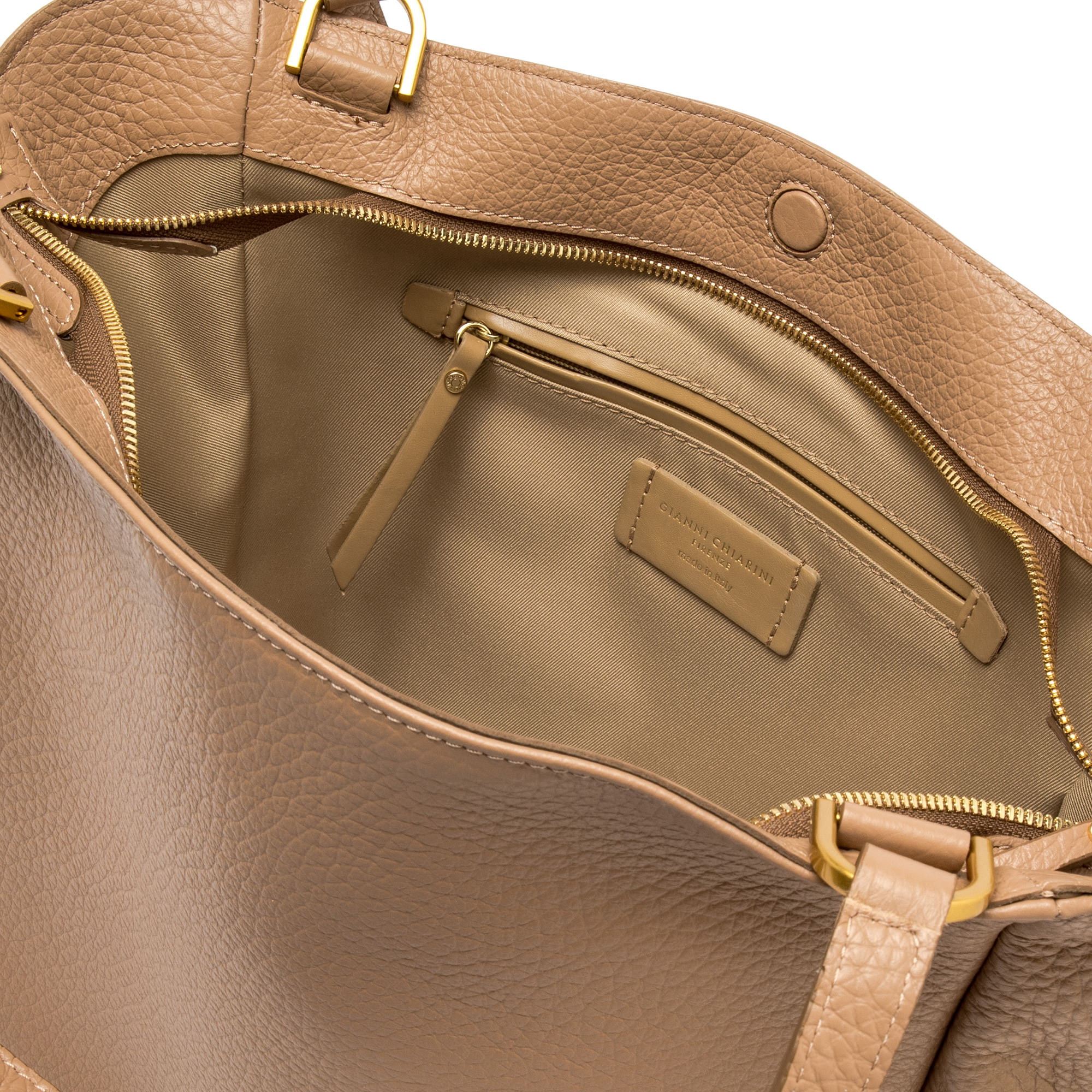 Cecile by Gianni Chiarini Firenze si distingue per il suo design minimalista e le linee essenziali. Realizzata in pelle grana maxi, presenta una silhouette a cartella, perfetta per donne dinamiche che desiderano combinare funzionalità e stile. È dotata di due manici in pelle per una portabilità handle. L’interno ampio include un scomparto principale e una chiusura superiore con patta e bottone magnetico. Dimensioni: 35x30x15 cm.