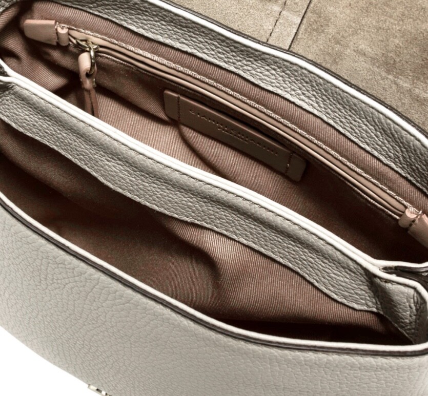 La borsa iconica Helena Round by Gianni Chiarini Firenze è realizzata in pelle martellata e presenta un design strutturato dall’appeal contemporaneo e chic. Dotata di una tracolla che permette una doppia portabilità, questa borsa è pratica e organizzata, con un doppio compartimento interno e una tasca a scomparsa nella parte posteriore.