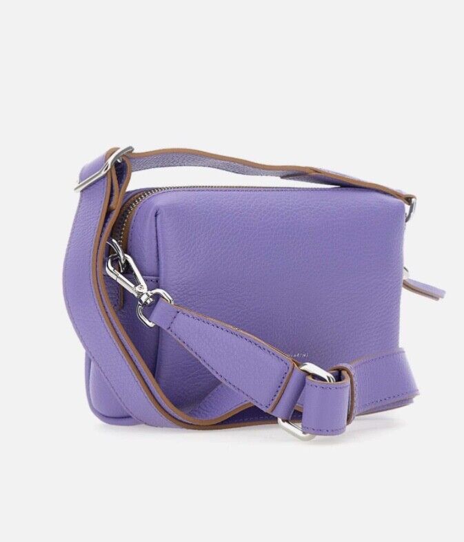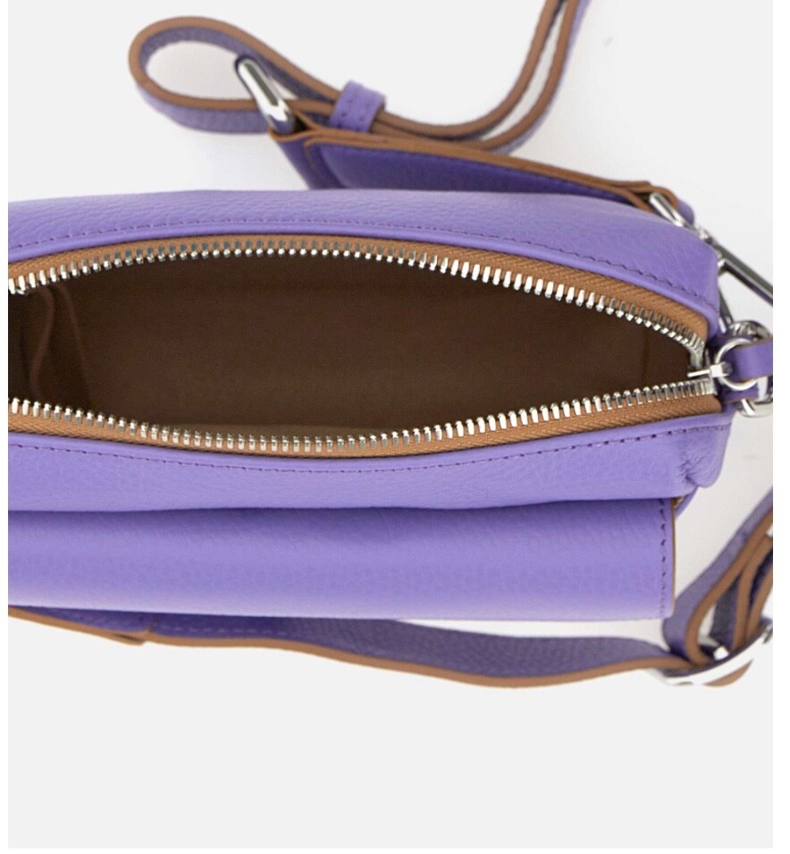Borsa a tracolla Gianni Chiarini “Deva” in pelle martellata , lavanda, chiusura con zip,scomparto esterno con chiusura a scatto, tasca interna con zip, tracolla di servizio removibile e regolabile 100 cm circa, , galvanica silver lucido, logo esterno. Misure: altezza 13 cm, 21 cm lunghezza, profondità 6 cm, dustbag inclusa, made in Italy.