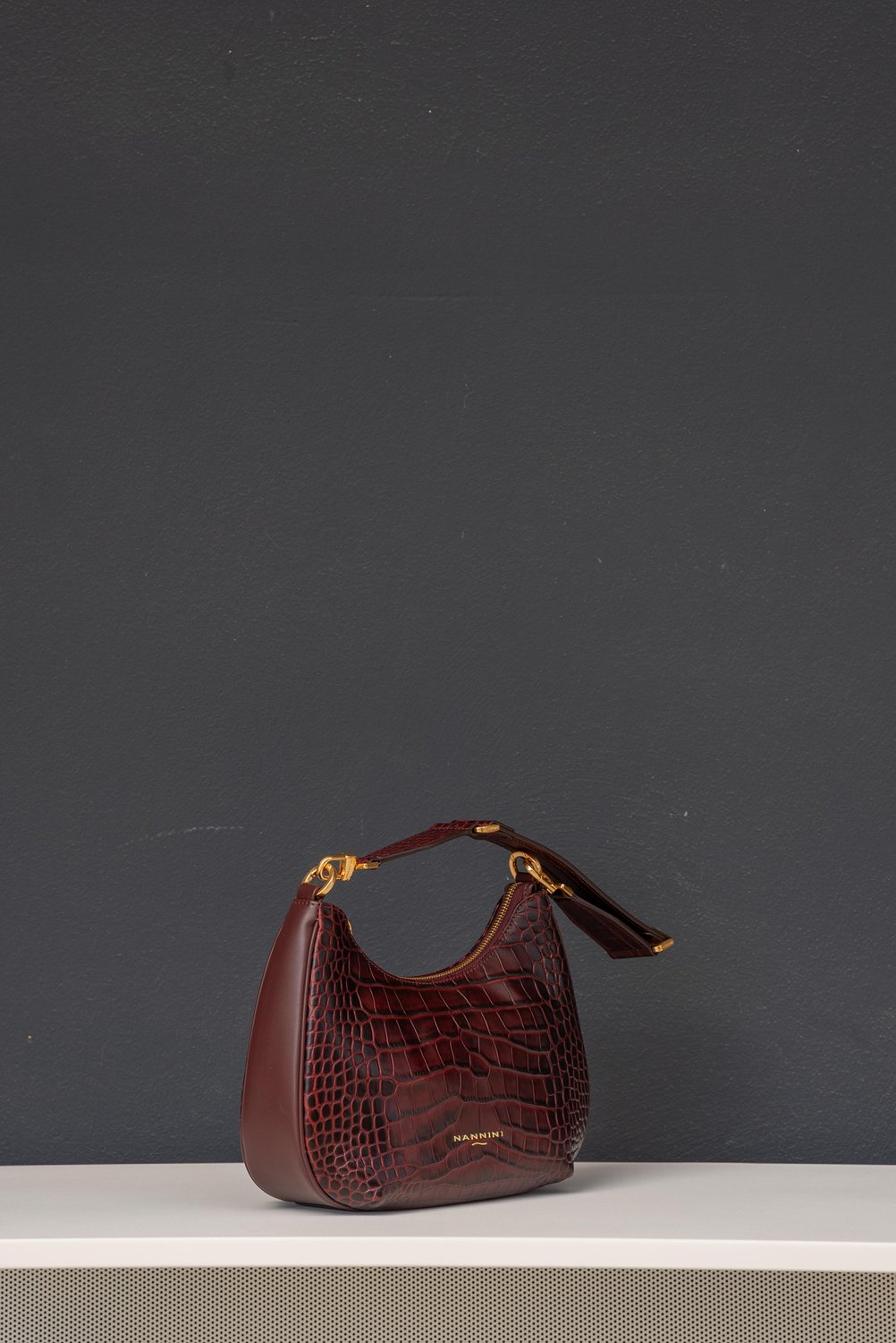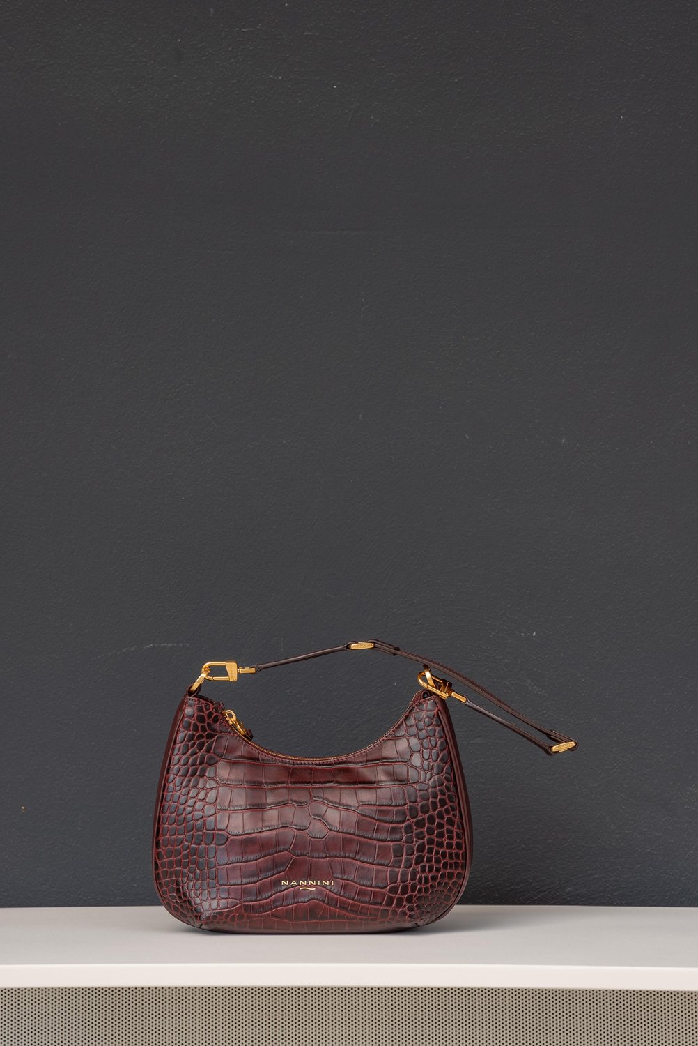 La Borsa a spalla firmata Nannini Firenze, della Linea Nunzia comoda e alla moda realizzata in pelle è arricchita da stampa effetto cocco e da manico removibile, con tracolla anch’essa removibile, presenta tre scomparti chiusi con zip foderati in tessuto logato.