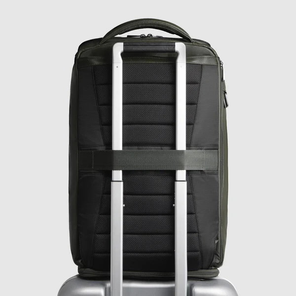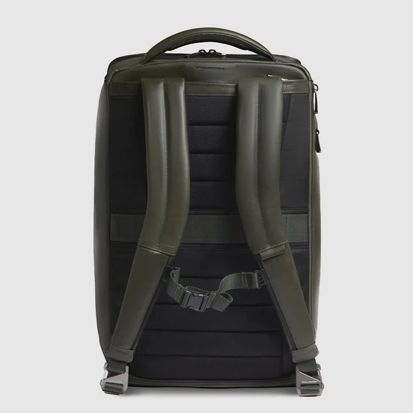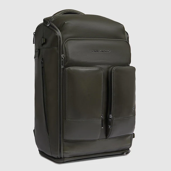 Borsone da viaggio in pelle portabile a zaino con vano porta scarpe, scomparto porta pc, portaocchiali e cinghia sternale, espandibile