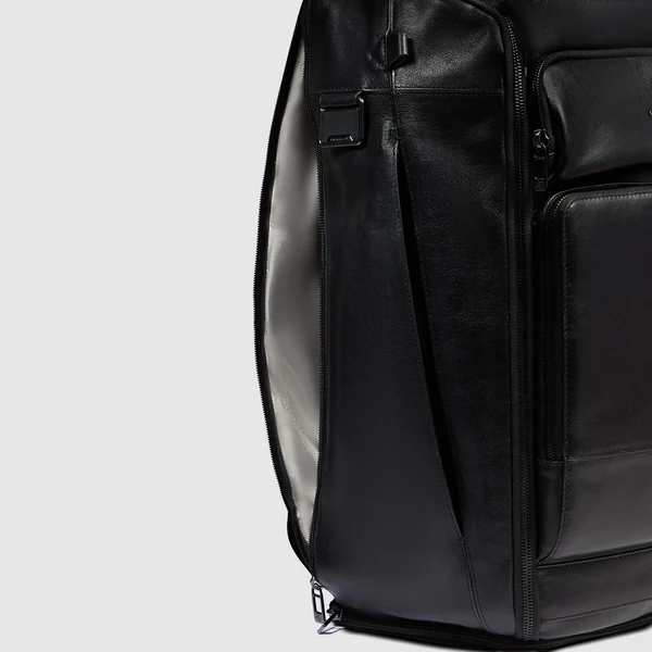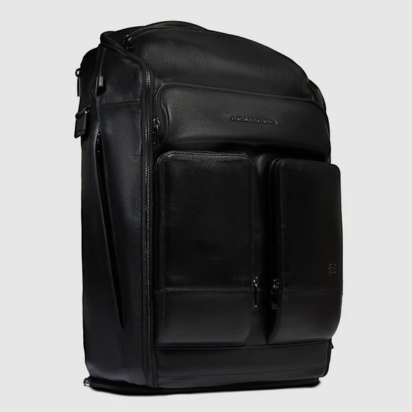 Borsone da viaggio in pelle portabile a zaino con vano porta scarpe, scomparto porta pc, portaocchiali e cinghia sternale, espandibile
