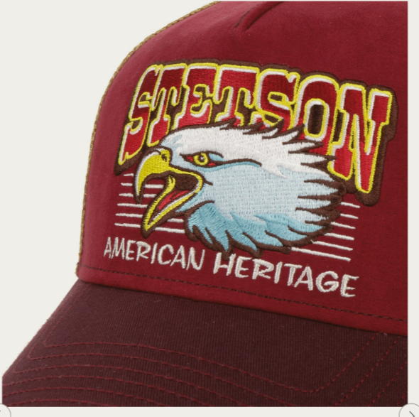 • Il cappellino trucker di Stetson unisce due simboli essenziali del patrimonio culturale statunitense. Il tipico design con il pannello frontale rinforzato e il retro in rete era, infatti, originariamente indossato dai camionisti americani. Il camionista e l`aquila hanno un significato simbolico e sono sinonimo di libertà, coraggio e forza negli Stati Uniti. Le cuciture decorative in contrasto con i colori e la chiusura a scatto regolabile completano il design deciso di questo cappellino stile baseball.