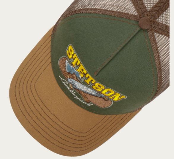Il cappellino in stile tradizionale trucker di Stetson incarna lo spirito dei forestali e del loro legame con la natura, nonché di uno stile vissuto all`aria aperta. La visiera curva, la parte frontale rialzata e quella in rete sul retro sono tutte realizzate in colori naturali, così come il robusto ricamo del marchio sul davanti. Le cuciture decorative completano il design in modo armonioso ed è garantita la corretta circolazione dell`aria, in aggiunta a una grande comodità. Questo cappellino in stile baseball è anche un accessorio di tendenza per chi vive in città.