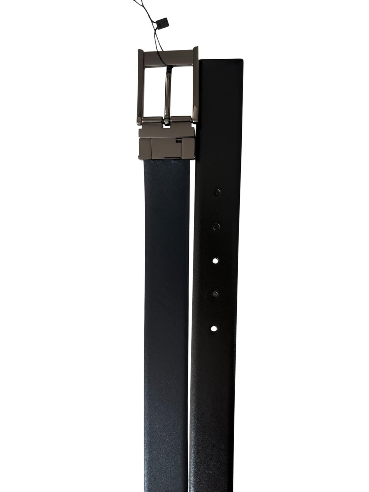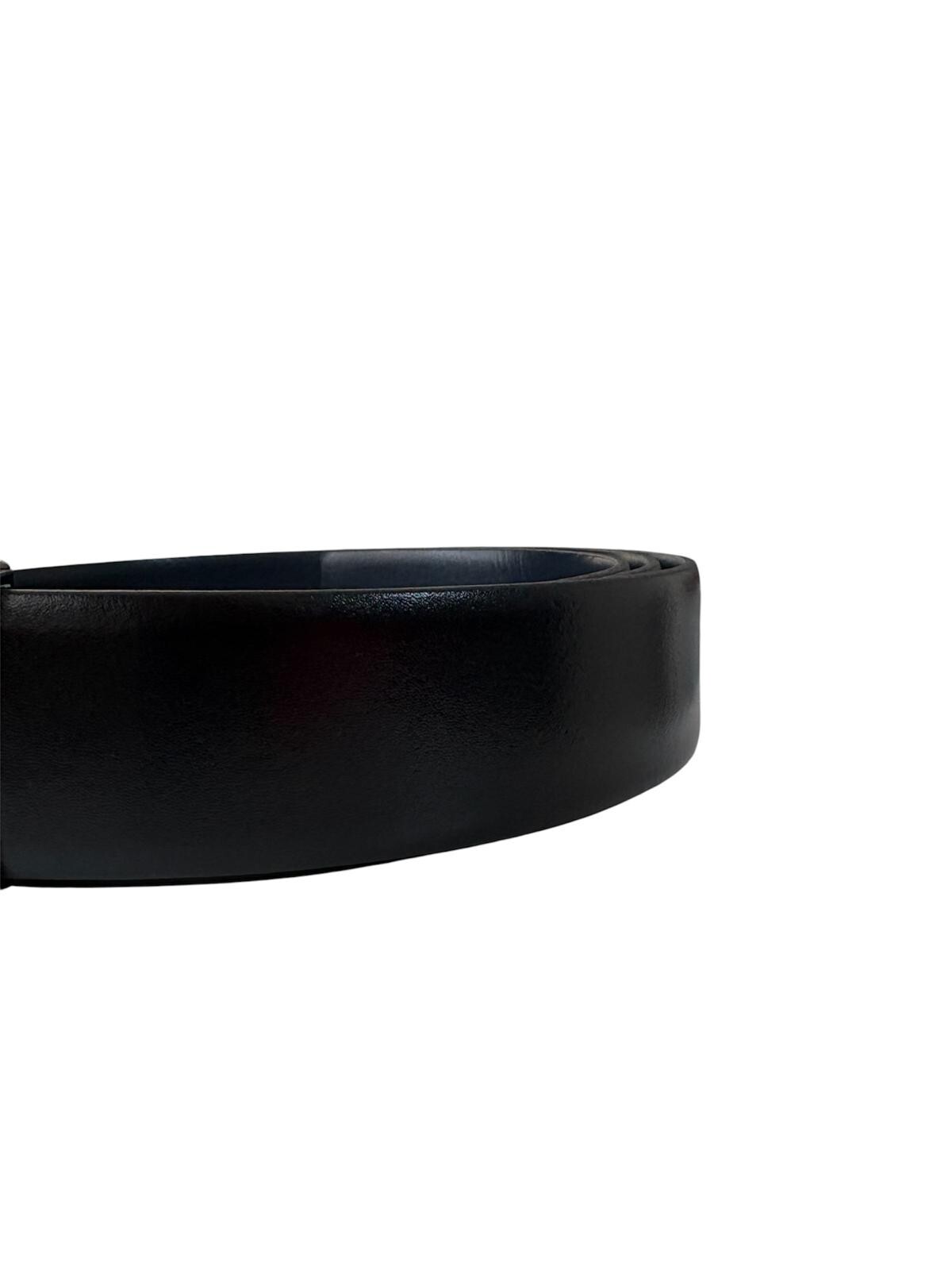 Cintura realizzata in pelle lavorata liscia, dotata di fibbia rettangolare con logo in rilievo tono su tono.