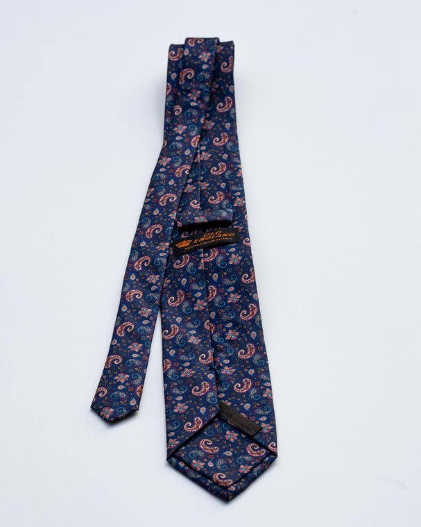 Eleganza senza tempo definisce questa squisita cravatta Etro, un accessorio distintivo realizzato in pura seta italiana al 100%. Caratterizzata da una ricca fantasia paisley all-over nei toni del blu notte, rosso e azzurro, questa cravatta offre un tocco di raffinatezza e colore a qualsiasi completo formale o elegante. La sua trama jacquard in seta è morbida al tatto e garantisce una consistenza eccellente e un drappeggio impeccabile.
