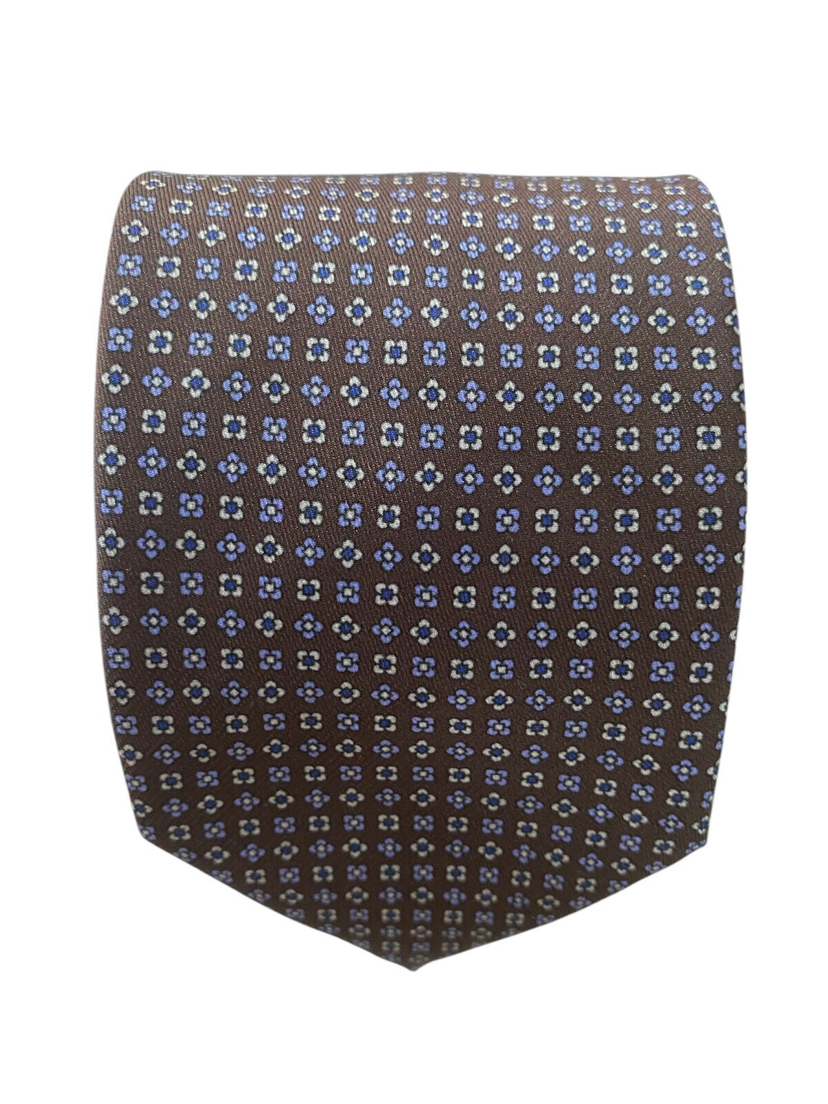 Raffinata ed elegante cravatta marone con fantasia floreale in seta ,