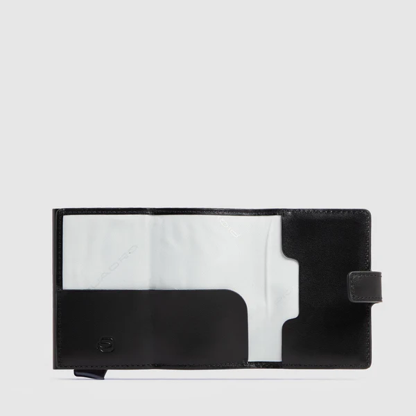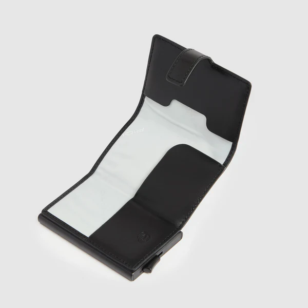 Portacarte uomo automatico “Piquadro x Ducati” in metallo e pelle, schermato con protezione RFID