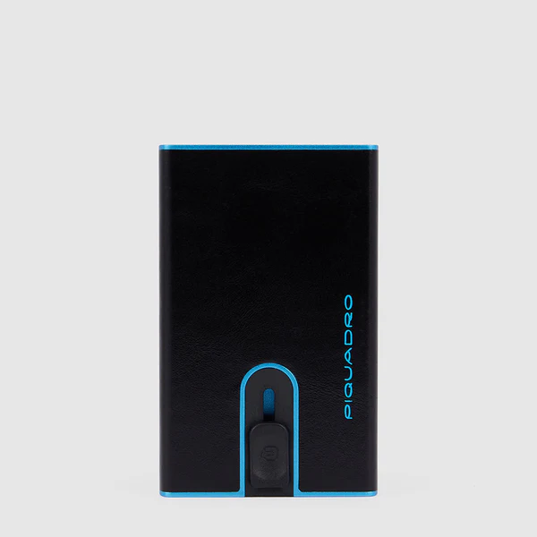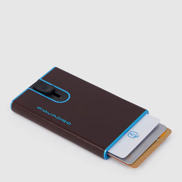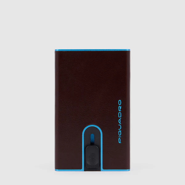 Portacarte uomo automatico in metallo e pelle, schermato con protezione RFID