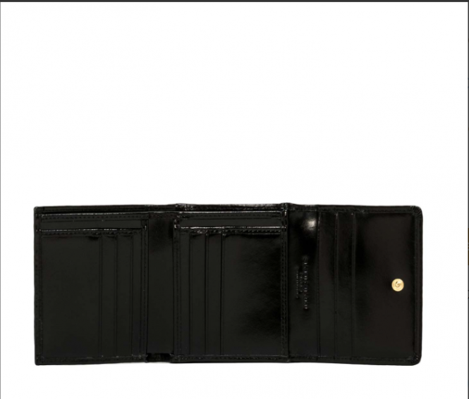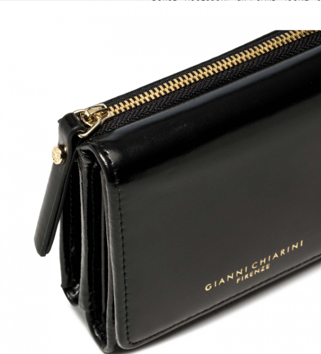 Piccolo ed elegante il portafoglio Wallets Clux Gianni Chiarini è perfetto per chi cerca un accessorio comodo da tenere sempre nella propria borsa. Realizzato in pelle lucida presenta un apertura con bottone a pressione e vari scomparti portatessere e un apertura con zip con due scomparti interni.