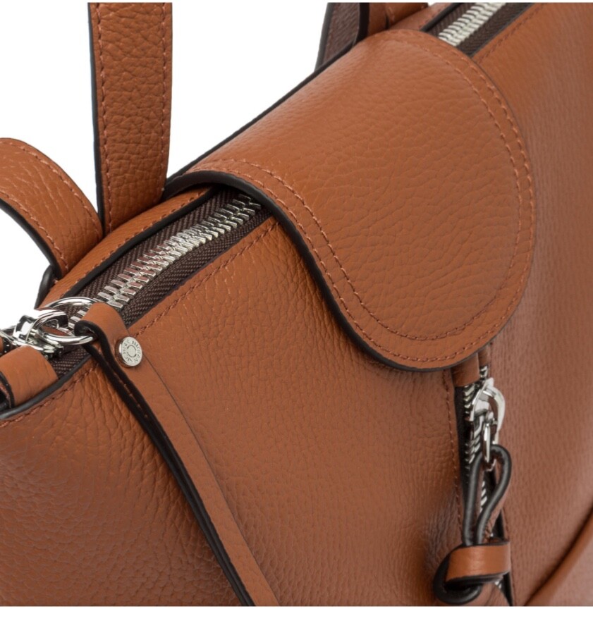 Giada è uno zaino di Gianni Chiarini Firenze, realizzato in pelle martellata. Caratterizzato da maxi tasche frontali e da una chiusura con zip superiore, è un accessorio pratico e ideale per un uso quotidiano. Dotato di manico e spallacci regolabili, l’interno presenta una tasca con zip e tasche piatte multiuso.