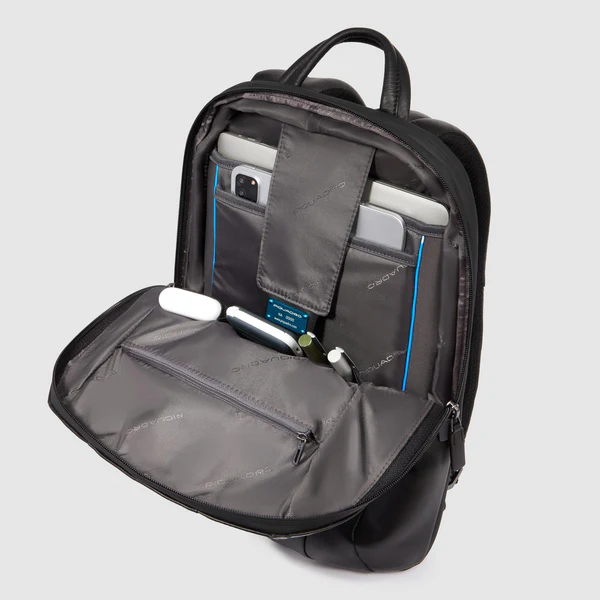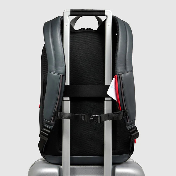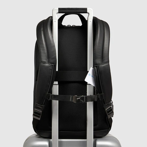 Zaino uomo espandibile in pelle porta pc e porta iPad® con protezioni antiurto e RFID, cinghia pettorale e tasca per AirPods®
