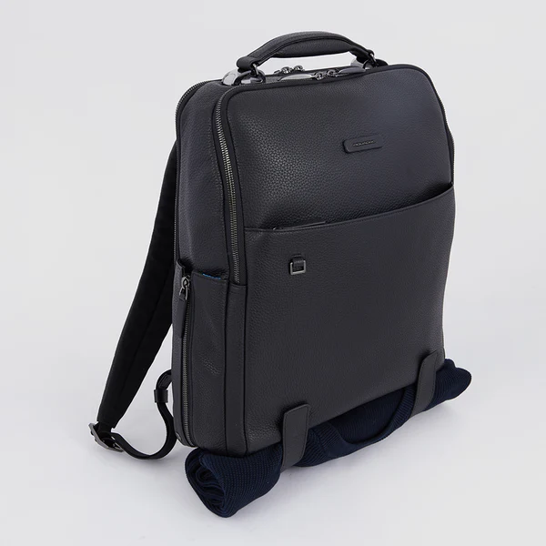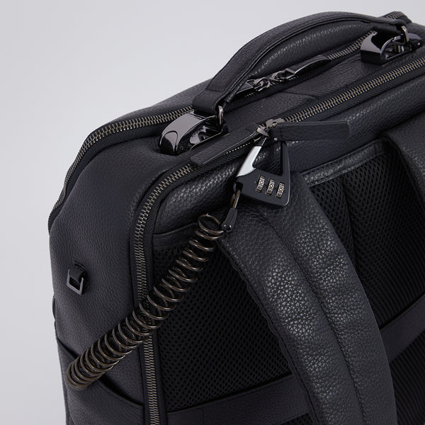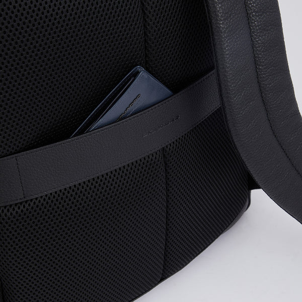 Zaino uomo sottile in pelle con porta pc e porta iPad®, cavo antifurto, protezioni antiurto e RFID